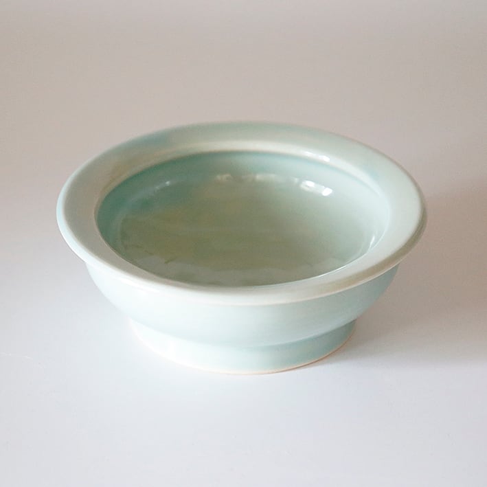 口縁の下辺りを内側に入れ込んでありますのでスプーンですくう際、料理が器の外に逃げにくく幅1,5cm程のリムは指を添えやすい様に考えてあります。