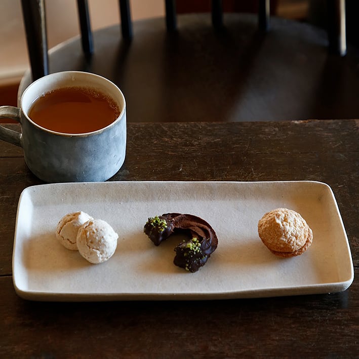 カップやボウルと組み合わせて軽食のワンプレートやお菓子を盛り付けても