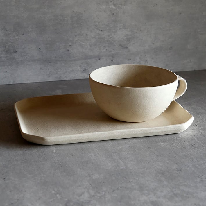 カップをのせてパンとスープのランチやお寿司を盛り付けたり、